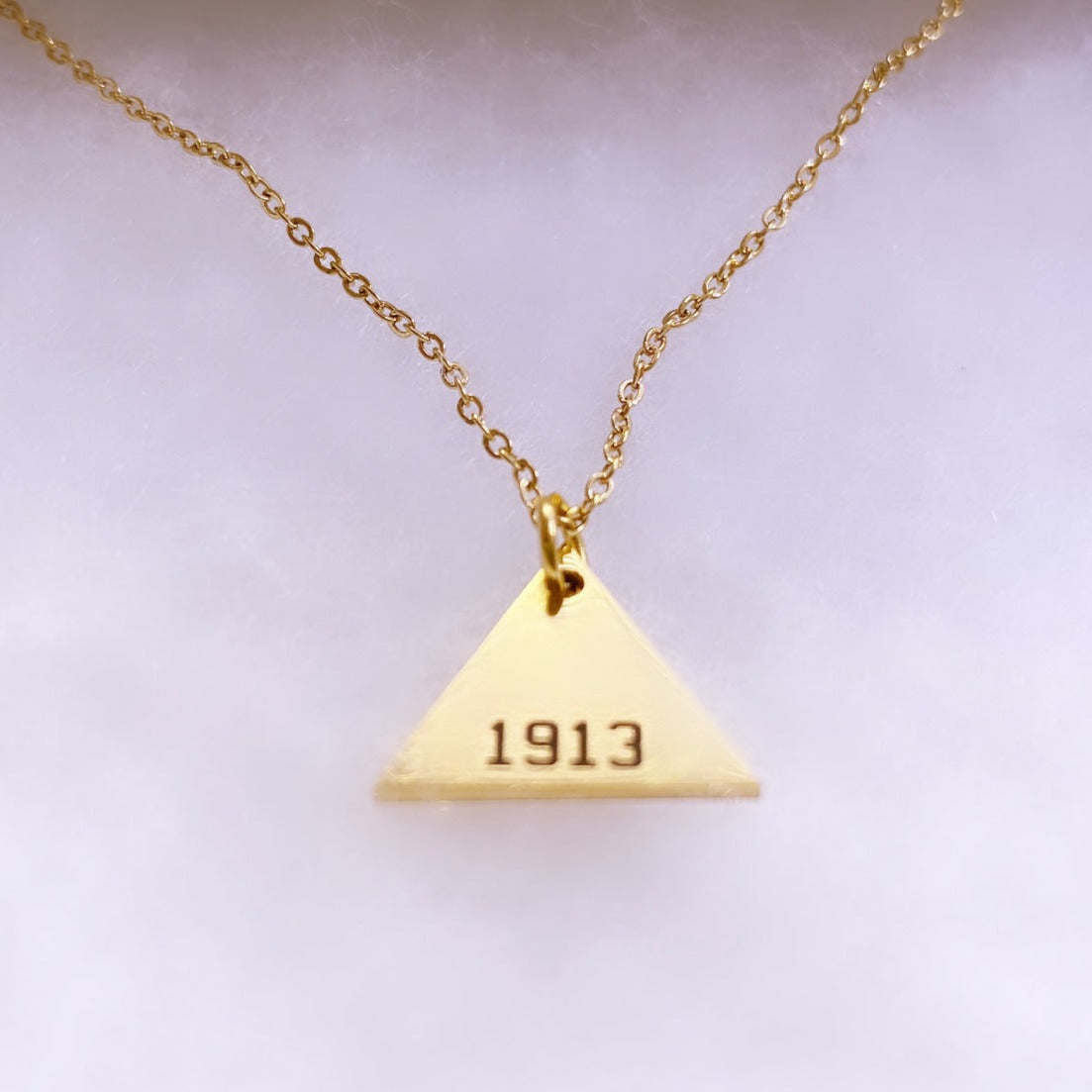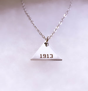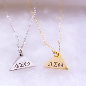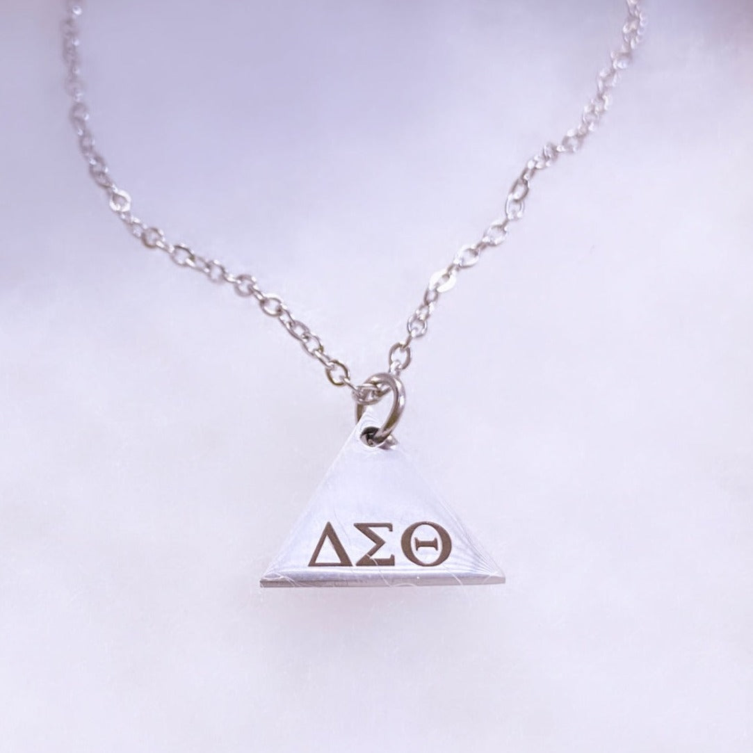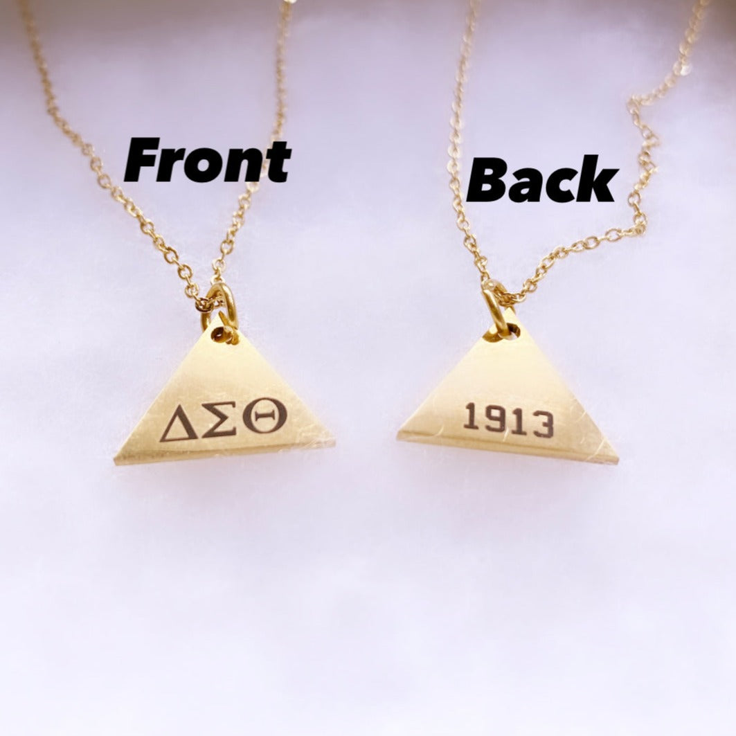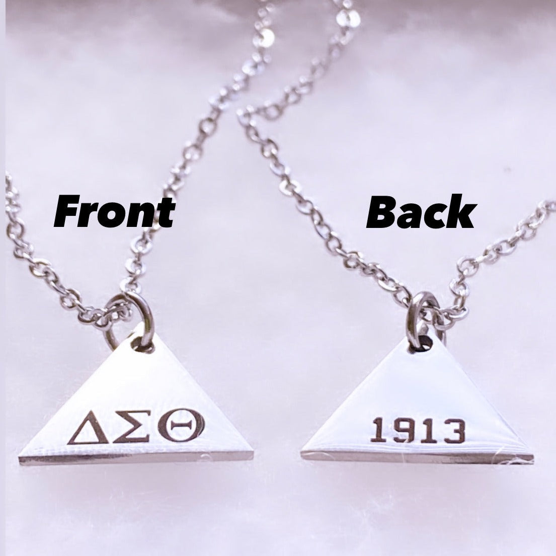 Dainty, Delta Sigma Theta Necklaces. Represent your Sorority with this be4autiful, stainless steel, double sided engraved necklace features DST (Greek letters) on one side and 1913 on the flip side. Order the Chapter Necklace exclusively available online at The Chic Greek. Stainless Steel will not tarnish.
