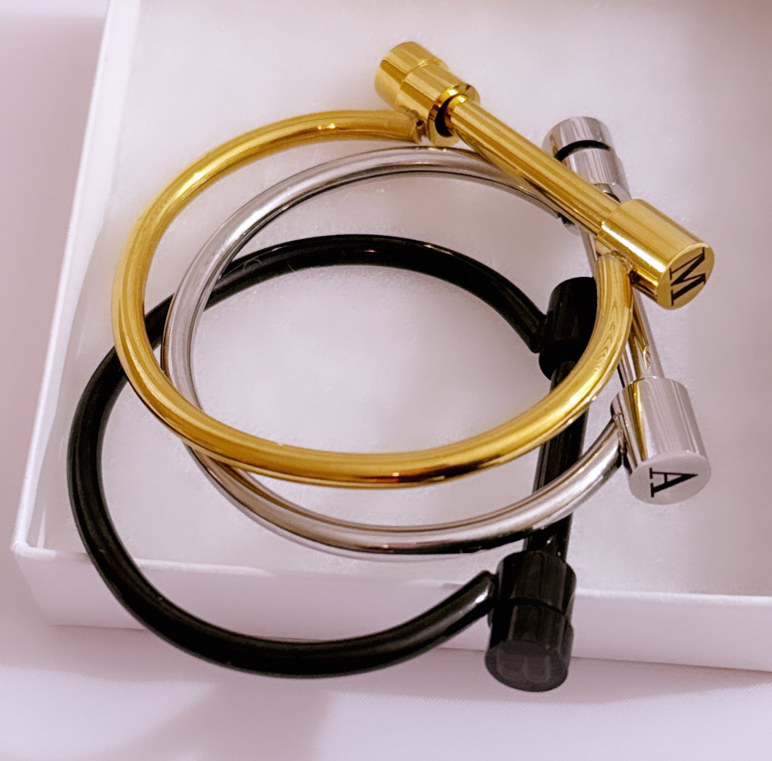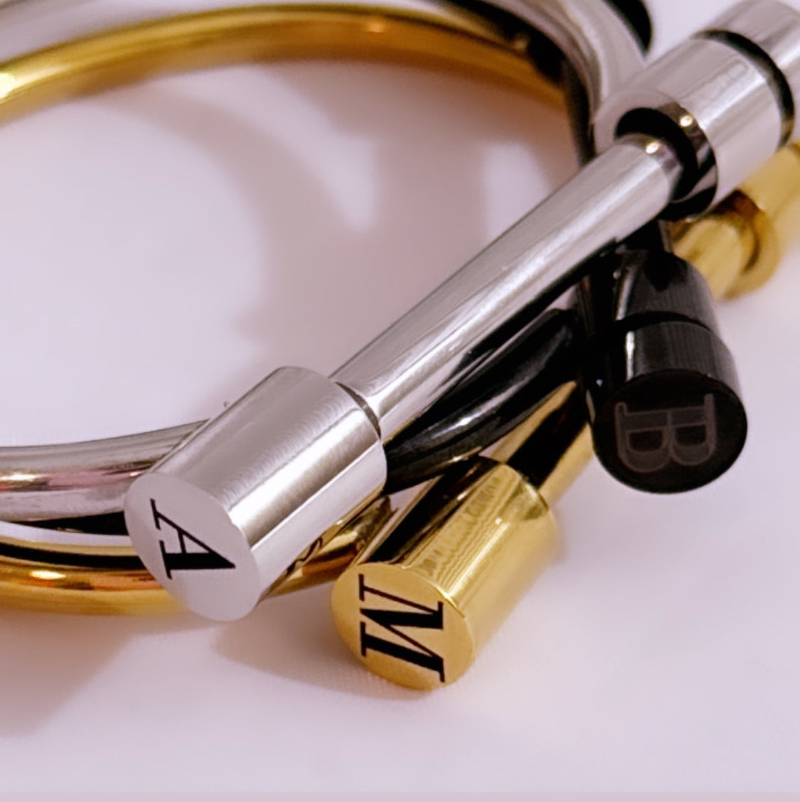 Screw Cuff Bracelet with Engraved Initial